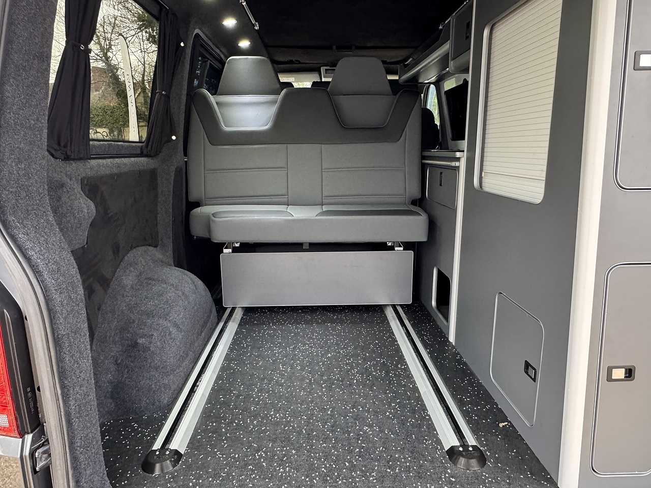 Specification: M1 Tested 2 Seat Rail Bed, Awning rail, M1 tested Pop top Scenic roof, Diesel Heater,100w Solar panel, Gas and Electrical Certified sign off, Secure gas locker bottle storage for Blue 904, Double hob, Sink with 12v water pump and water storage, Mains Electrical hook up, Leisure battery with charging from mains hook up and vehicle battery, 2x 240v plug sockets when on hook up. LED lighting, 12v Fridge/Freezer, Curtains, Foldable table, Reversing Camera , Electric sliding doors, 20" Alloys, Trapezoid side bars, Tail gate, Towbar..Air conditioning, Apple Carplay/Android auto, DISCOVER Navigation, Soft close Tailgate, DAB radio, USB input Stop/Start, Heated Front screen, Auto lights, Auto dimming rear view mirror, Front and Rear parking sensors.