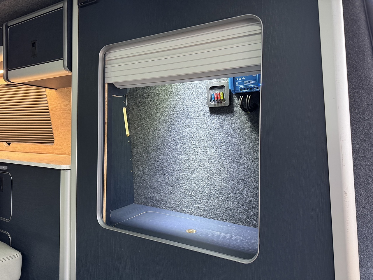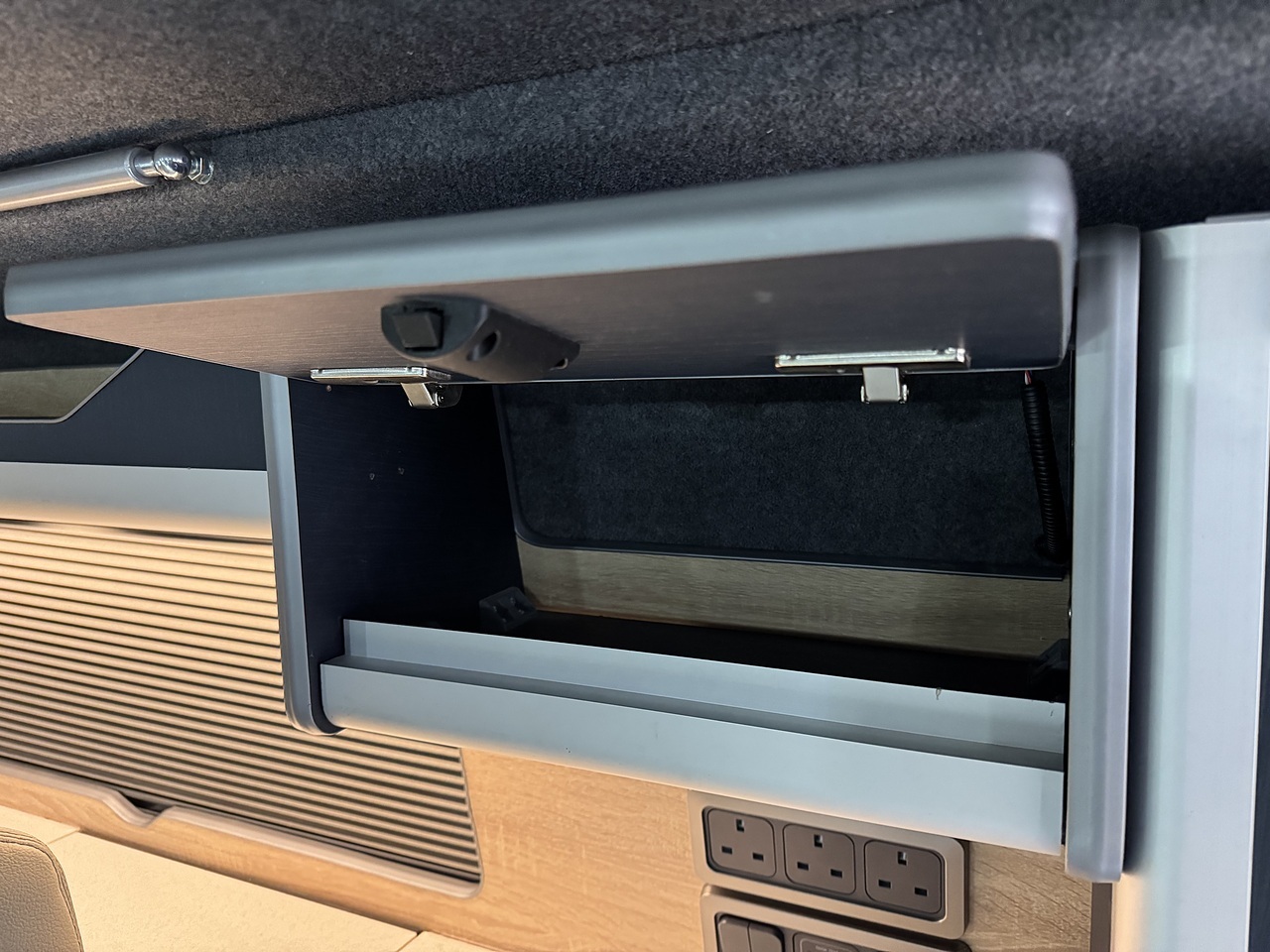 Specification: 150AH Lithium leisure battery, 1600w Inverter with 1x 240v plug socket, M1 Tested 3 Seat Rail Bed with ISOFIX, M1 tested Pop top Scenic roof, Autoterm Diesel heater with comfort controller, 100w Solar panel, Electrical Certified sign off, Sink with 12v pump, Mains Electrical hook up, Leisure battery with charging from mains hook up and vehicle battery, 1 x 240v plug sockets when on hook up. LED lighting, 12v Fridge/Freezer, Curtains, Foldable table.